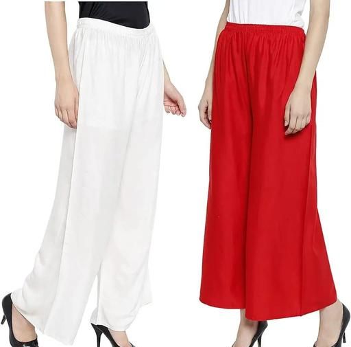 Women's 100% Pure & Soft Rayon PALAZZO made with High-Quality and Non-Transparent Rayon fabric are long women's trousers cut with a loose, extremely wide leg that flares out from the waist. PALAZZOS are popular as a summer season style as they are loose and tend to be flattering in light, flowing fabrics that are Comfortable, Lightweight and Breathable PALAZZOS with Best Quality fabric. It has Wide 1.5” ELASTIC-BAND Closure along with DRAWSTRING.