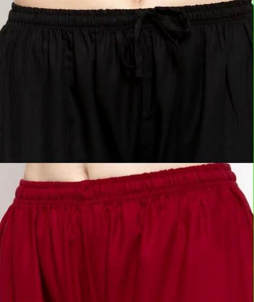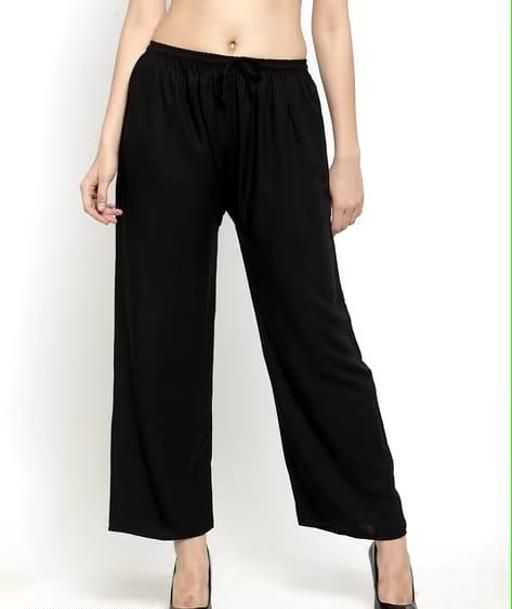 Women's 100% Pure & Soft Rayon PALAZZO made with High-Quality and Non-Transparent Rayon fabric are long women's trousers cut with a loose, extremely wide leg that flares out from the waist. PALAZZOS are popular as a summer season style as they are loose and tend to be flattering in light, flowing fabrics that are Comfortable, Lightweight and Breathable PALAZZOS with Best Quality fabric. It has Wide 1.5” ELASTIC-BAND Closure along with DRAWSTRING.