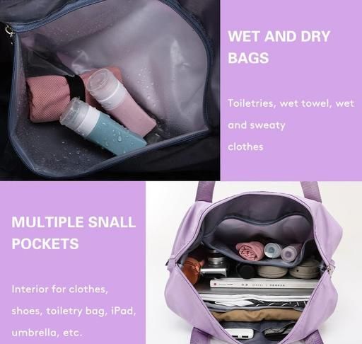 The dry and wet separate pocket provides exclusive pockets for toiletries and wet towels, a good choice for sports gym tote bags.