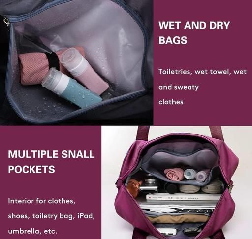 The dry and wet separate pocket provides exclusive pockets for toiletries and wet towels, a good choice for sports gym tote bags.