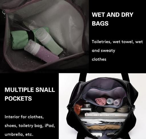 The dry and wet separate pocket provides exclusive pockets for toiletries and wet towels, a good choice for sports gym tote bags.