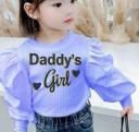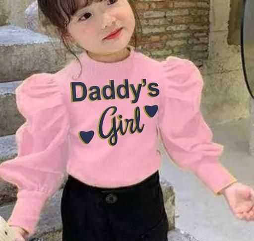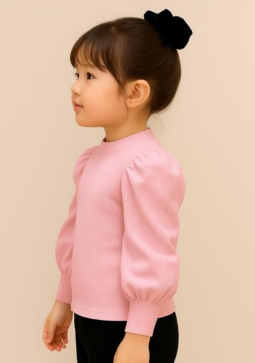 Dedy's Girl Printed at Front Of Top With Shadow Effect, Solid Long Puff Sleeves, Round Neck, Regular Length, Regular Wears For Casual Daily Wears Top For Girls. Sky Puff Kids Top,