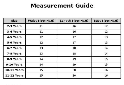 10-11 Years (Bust Size: 16 in, Length Size: 20 in, Waist Size: 15 in)