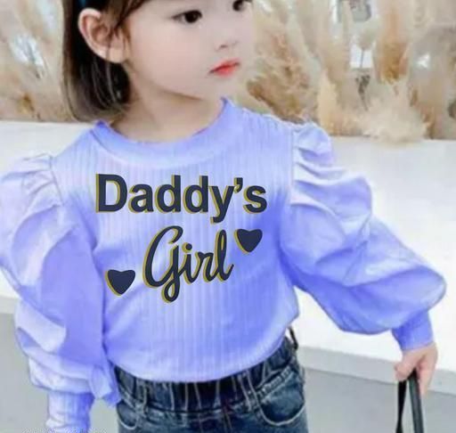 Dedy's Girl Printed at Front Of Top With Shadow Effect, Solid Long Puff Sleeves, Round Neck, Regular Length, Regular Wears For Casual Daily Wears Top For Girls. Sky Puff Kids Top,