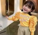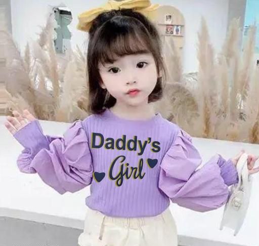 Dedy's Girl Printed at Front Of Top With Shadow Effect, Solid Long Puff Sleeves, Round Neck, Regular Length, Regular Wears For Casual Daily Wears Top For Girls. Sky Puff Kids Top,