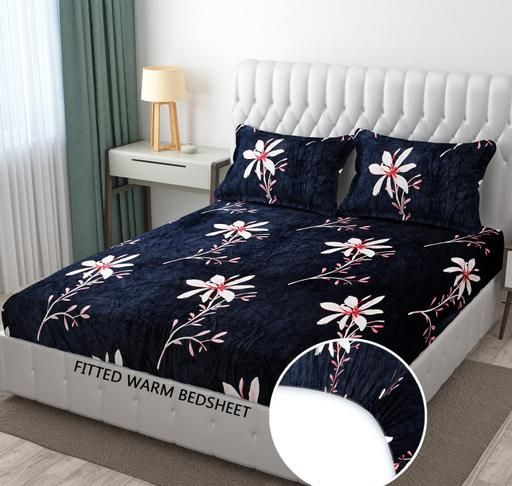 Name: 200 TC Woolen velvet Elastic Fitted Bedsheet With 2 Pillow Cover ( Fabric - Flano)