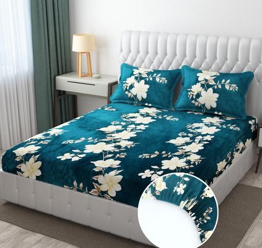 200 TC Woolen velvet Elastic Fitted Bedsheet With 2 Pillow Cover ( Fabric - Flano)