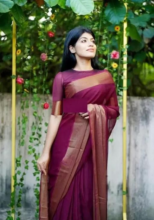 Name: Plain chiffon solid golden weaving zari trending saree for women