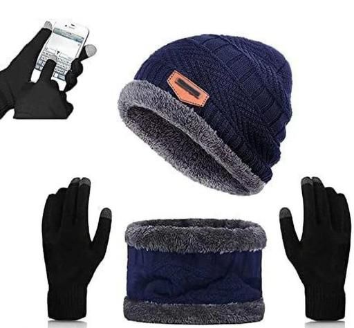 Name: Trendy Winter Woollen Beanie Cap and Touch Screen Glove Set for Extra protection From cold for Men & Women (free Size)