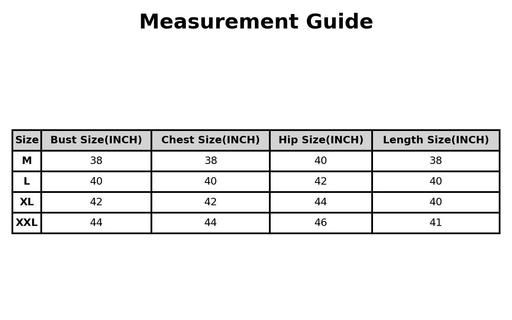XXL (Chest Size: 44 in, Length Size: 41 in, Hip Size: 46 in)