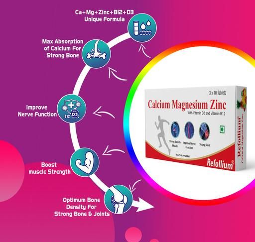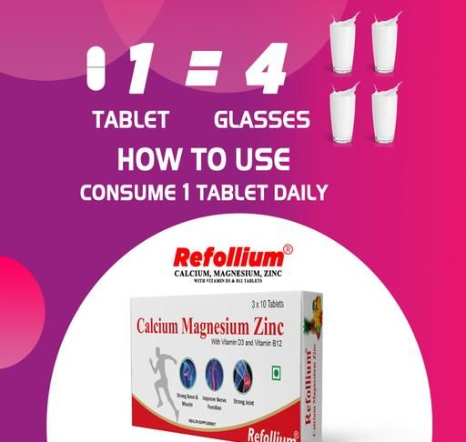 Name: Calcium Supplement 1000mg with Vitamin D3, Magnesium, Zinc & Vitamin B 12 For Men & Women/ For Immunity, Bone & Joint Support - 30 N