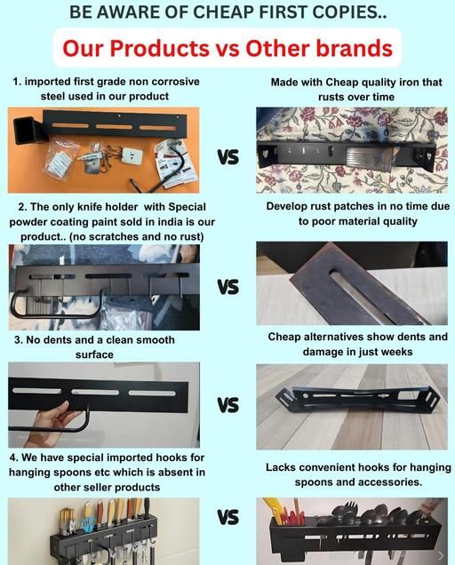 ✔ ✔ MADE USING HIGH-QUALITY MATERIAL: These multipurpose hangers for kitchen are made using high-quality and durable stainless steel, which is coated to provide resistance against rust and corrosion. Our knife holder for kitchen does not bend or break and offers a sturdy and stable cutlery rack for kitchen