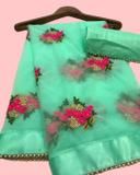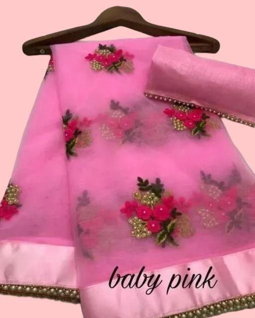 Name: embroidery work net fabric saree