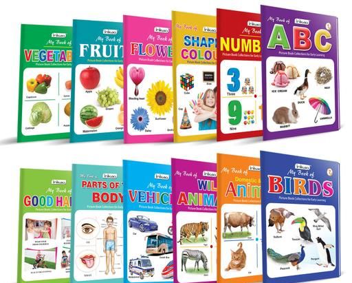 Picture Book Collections for Eary Learning (Set of 12) - My Book of ABC, Numbers, Colours & Shapes, Flowers, Fruits, Vegetable, Birds, Domestic animals, Wild Animals, Parts of Body, Good Habits