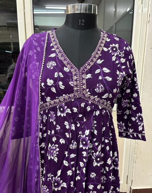 Name: Womens Beautiful Rayon Aliya Cut Embroidered Kurti With Pant and Dupatta Set