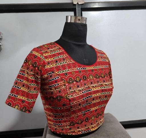 PRINTED STRETCHABLE FOIL WORKED READYMADE BLOUSE