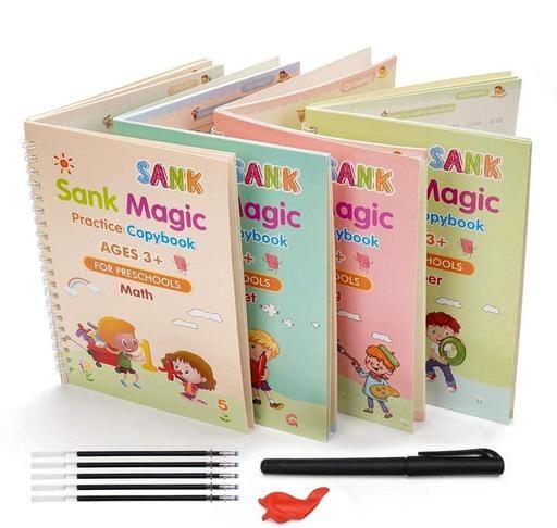 Name: Magic Book for Kids, Sank Magic Practice Copybook Number Tracing Book for Pre-Schoolers with Pen, Magic Calligraphy Copybook Set Writing Tool for Kids, (4 Book+10 Refill+1 Pen+1 Grip)