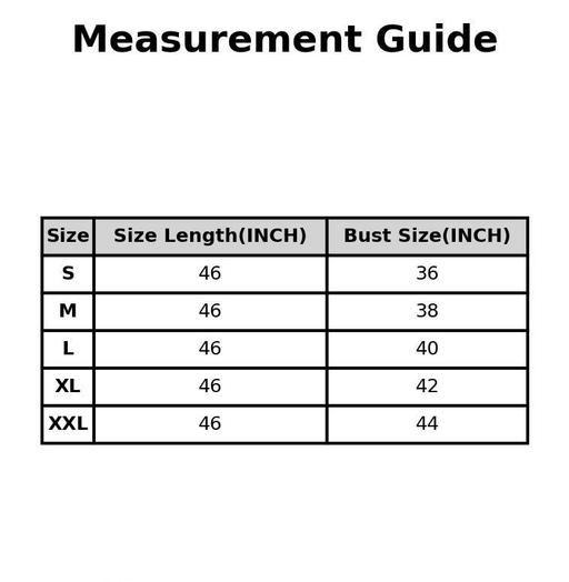 XXXL (Bust Size: 46 in, Size Length: 42 in)