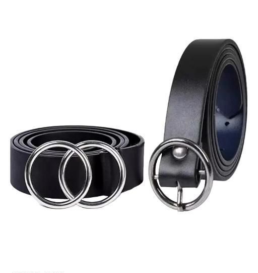 Name: Satyam Trendz™ Belts Black Double Ring Faux Leather Belt For Women's & Girls | Formal & Casual Belt For Ladies | Double Ring Belt For Ladies
