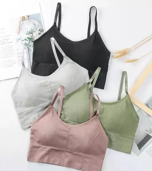 Name: Pack of 4 |Women's Girl's Cotton Full Coverage Crop Top Lightly Padded Camisole Sassy Sort Bra,Beautiful And Fancy Sports Bra,Breathable Anti-Sweet t shirt Comfy bra,Seamless Bra for Women Yoga/Sport/Fitness, Sassy Women Sport Bra,646 bra in FREE SIZE