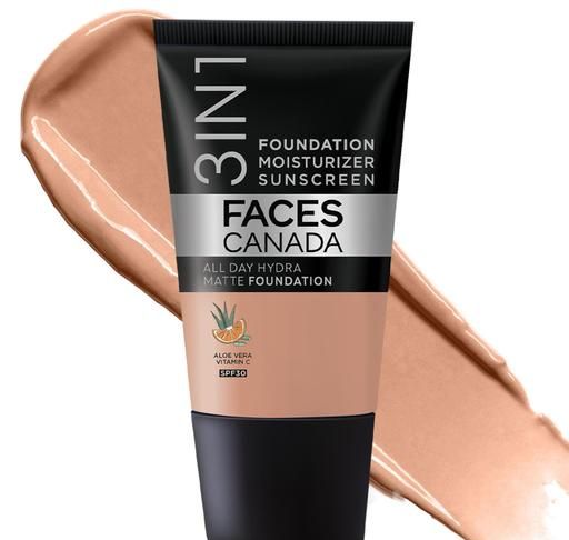 Product Name: FACES CANADA All Day Hydra Matte Foundation | 3-in-1 Foundation + Moisturizer + SPF 30 | 24 HR Aloe Hydration & Vitamin C | 10HR Long Wear | Medium to High Buildable Coverage | Caramel Natural | 15ml