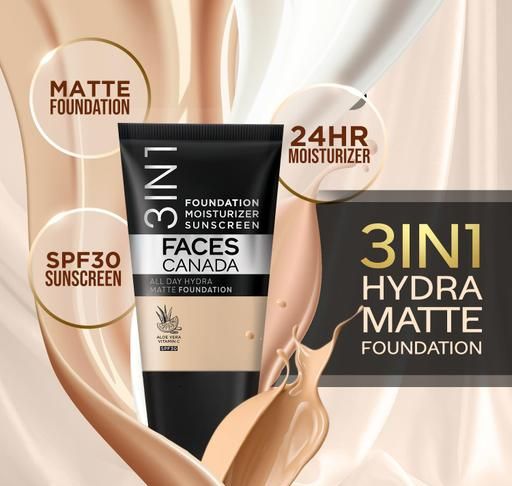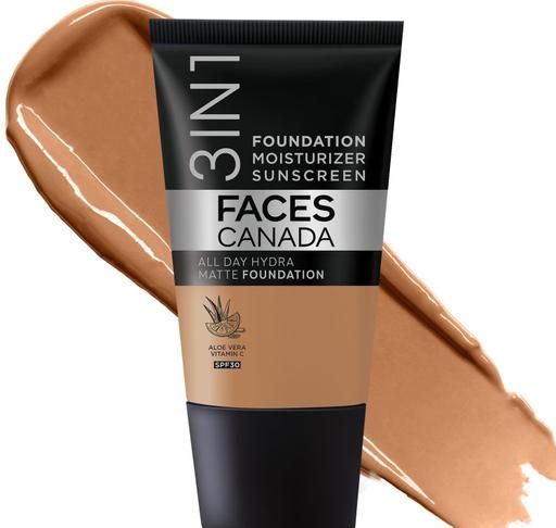 Product Name: FACES CANADA All Day Hydra Matte Foundation | 3-in-1 Foundation + Moisturizer + SPF 30 | 24 HR Aloe Hydration & Vitamin C | 10HR Long Wear | Medium to High Buildable Coverage | Warm Sand 042 | 15ml