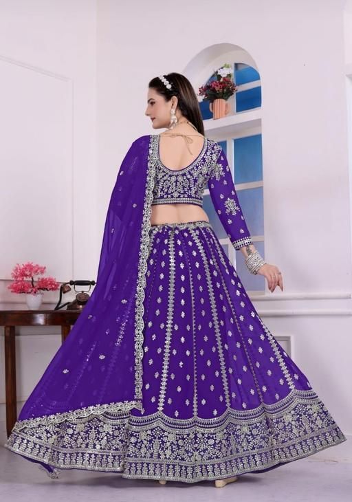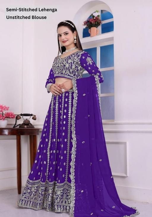 Name: Georgette Embroidered Blue Semi-Stitched Lehenga with Unstitched Blouse