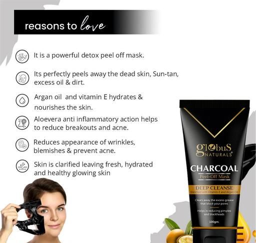 Globus Naturals Charcoal peel-off mask is a designed to provide deep cleansing and exfoliation by using activated charcoal as a main ingredient. This is good for oily skin beacuse of its ability to draw out impurities, toxins, and excess oil from the skin's surface, leaving it feeling refreshed and revitalized.