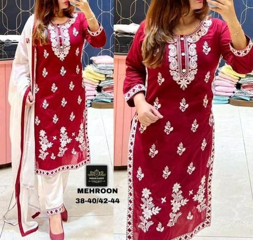 M (Bust Size: 38 in, Top Length Size: 42 in, Bottom Waist Size: 19 in, Bottom Length Size: 40 in, Dupatta Length Size: 2 in, Shoulder Size: 14 in)