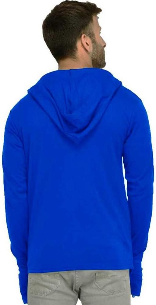 Name: Men Royal Blue Hooded Thumbhole Open Long Cardigan Overcoat Shrug Men's Party Wear Solid Cotton Square Neck Collar Full Sleeves Shrug