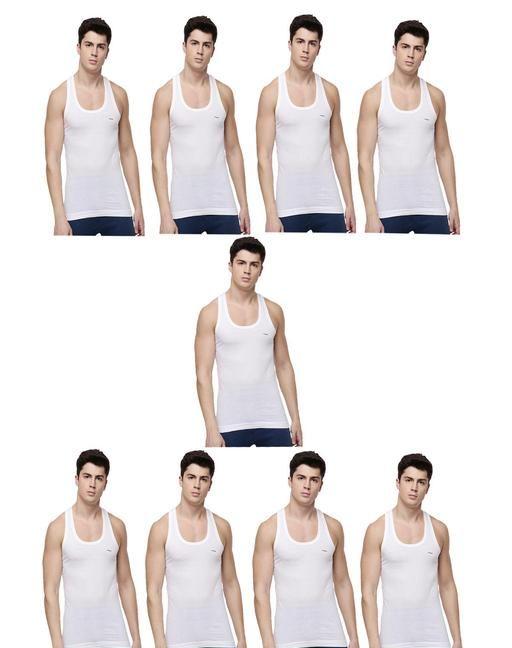 Name: Men Combed Cotton Round Neck Vest -Pack of 9- White