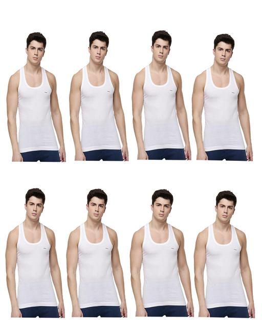 Name: Men Combed Cotton Round Neck Vest -Pack of 8- White