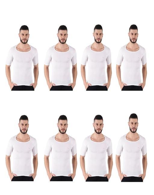 Name: Men Combed Cotton Round Neck With Sleeve Vest -Pack of 8- White