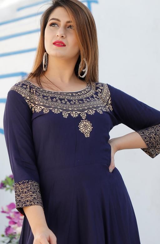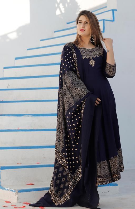 Women Rayon Printed Anarkali Kurti With Dupatta