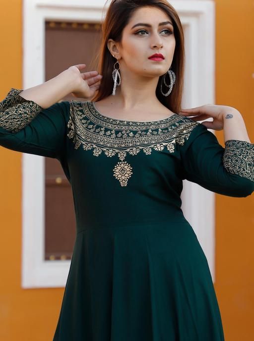 Women Rayon Printed Anarkali Kurti With Dupatta