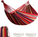 -- The cotton fabric feels a lot like a beach towel, so you won't be as hot while lying in the hammock.