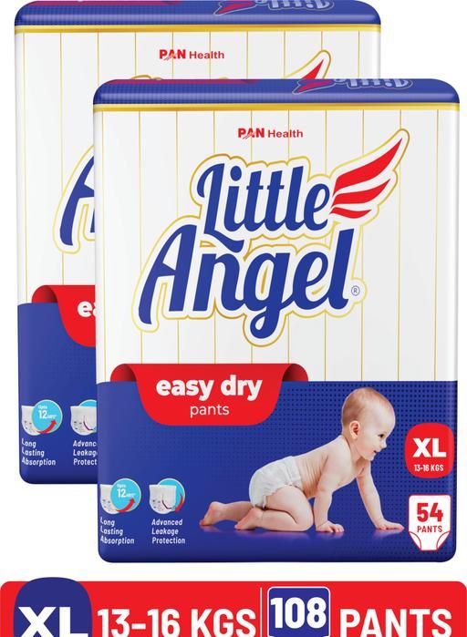 Product Name: Little Angel Easy Dry Pull-up Diaper Pants with 12 hrs absorption Extra Large (XL) Size, Pack of 2,13-16 Kgs - XL (108 Pieces)