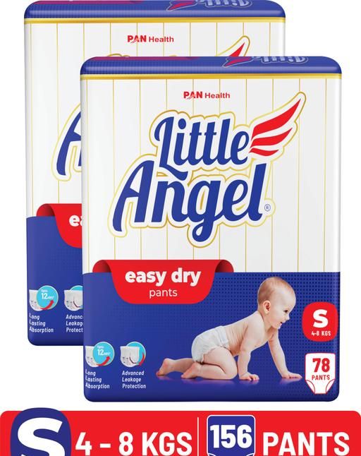 Product Name: Little Angel Easy Dry Pull-up Diaper Pants with 12 hrs absorption Small (S) Size,Pack of 2,4-8Kg - S (156 Pieces)