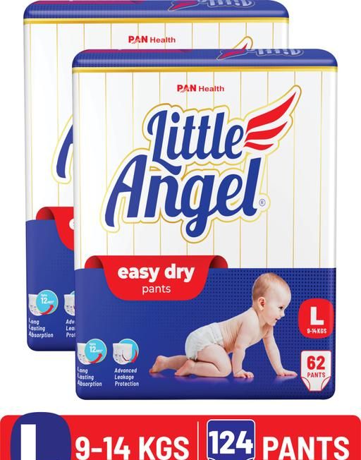 Product Name: Little Angel Easy Dry Diaper Pants with 12 hrs absorption Large (L) Size, Pack of 2,9-14 Kgs - L (124 Pieces)