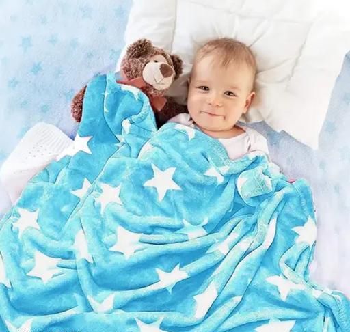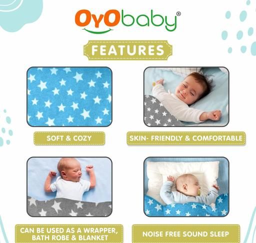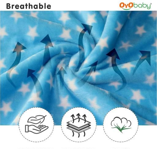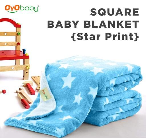 Name: OYO BABY Newborn Super Soft Star Printed Blanket Wrapper for Babies (100x75 cm) – Fluffy Fleece, Lightweight All-Season Sleeping Bag for 0-24 Months - (Blue)