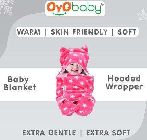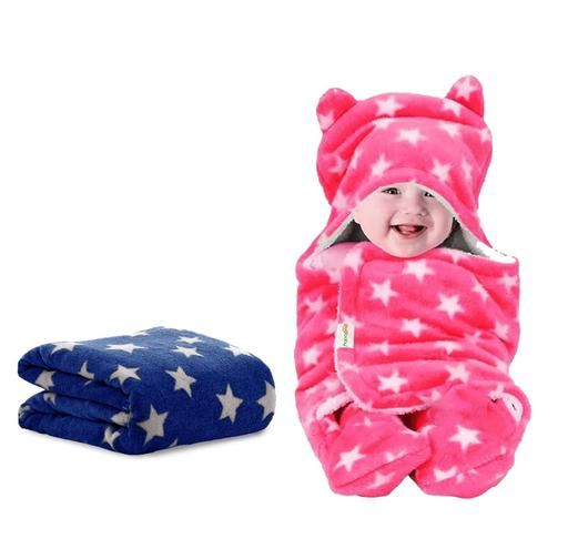 Name: OYO BABY Newborn Super Soft Star Printed Blanket Wrapper for Babies (100x75 cm) – Fluffy Fleece, Lightweight All-Season Sleeping Bag for 0-24 Months Pack of 2 - (Dark Blue + Pink)