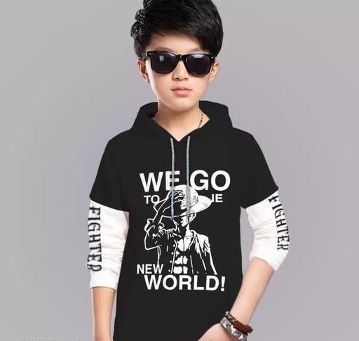 Kids Boys & Girls Hooded Neck Full Sleeves Regular Fitted Pure Cotton Printed T Shirt,