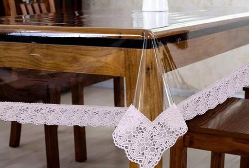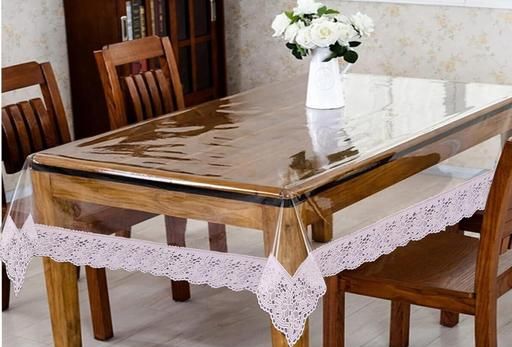 Name: PVC TRANSPARENT 6 Seater Table Cover/Dining Table Cover_3D Design/Bubbly Design (SILVER Laces, PVC 54*78)