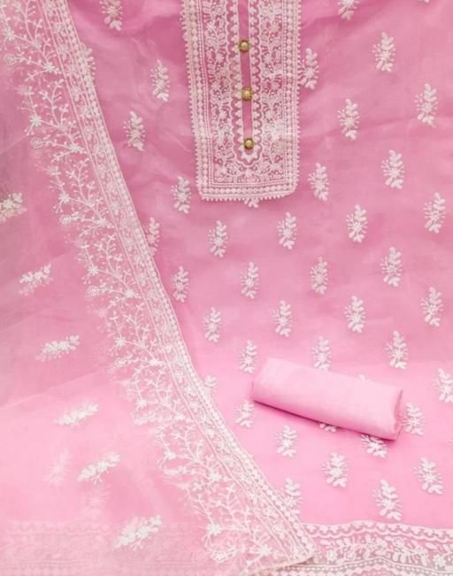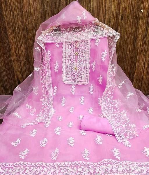 Name: Unstiched Exclusive Super Best Collections Organza Party Wear Fancy Patiala Pakistani jaipuri All Occastions Organza Suits Women's pink Embellished Embroidered Organza Suits & Dress Materials