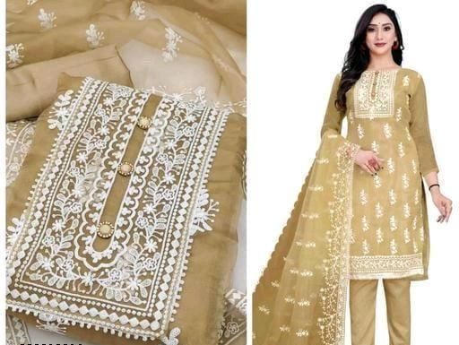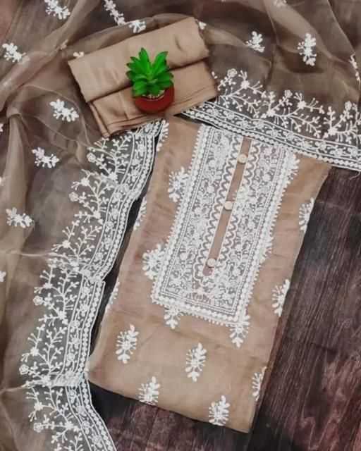 Name: Unstiched Exclusive Super Best Collections Organza Party Wear Fancy Patiala Pakistani jaipuri All Occastions Organza Suits Women's Brown Embellished Embroidered Organza Suits & Dress Materials