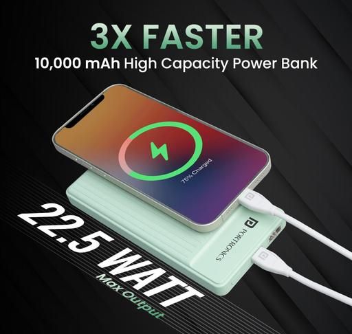 Product Name: Portronics Luxcell B 10K 10000 mAh 22.5W Fast charging Power Bank, Ultra Slim Power Bank with Mach USB-A Output, Type C PD Output, Type C Input, Wake Up Button(Green)