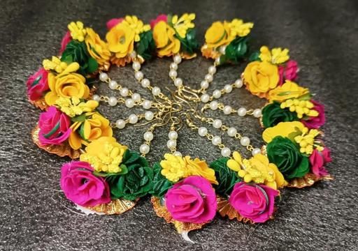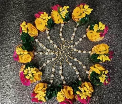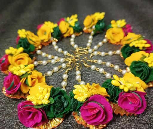 Name: Wedding Haldi cermony Flower mangtika set for wedding Baby Shower | Haldi Mehandi | Party in Yellow Colour for Girls and Women(set of 12) Haldi Mangtika
