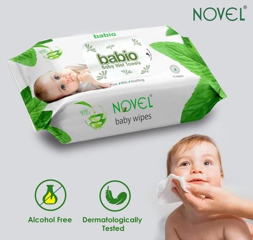 The aloe vera plant extract included in this wet wipe formula soothes and cools your babys skin and leaves it fresh and moisturised. These portable Novel Baby Wipes have fresh and pleasant lemon fragrance that ensures your baby gets a fresh feeling and remains bacteria-free every time his or her diaper is changed. Besides its all important use during diaper or nappy changes, this product can be used for many other purposes. If your baby has just started walking or has just begun to crawl, he or she is bound to have dirty palms and knees. Use these wipes to clean your toddler after they have explored their home by crawling all day. These wipes can even be used by pre-school children to clean their hands before meals and after playtime. These baby wipes are also a perfect addition to your babys bag while you are travelling and may not have easy access to water. The pack contains 72 sheets. The re-sealable cover helps to keep the freshness and moisture of the wipes intact. It is highly recommended that you store it in a dry place to keep its freshness intact. The Novel Baby Wet Wipes are enriched with Aloe Vera Extracts which keep your baby skin from drying up after a rigorous cleaning session. The wipes are soft and gentle, but also very effective. These are made of a spun lace, non-woven fabric , making it safe and ideal for using on babies too. Those