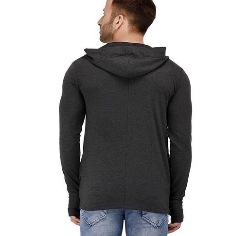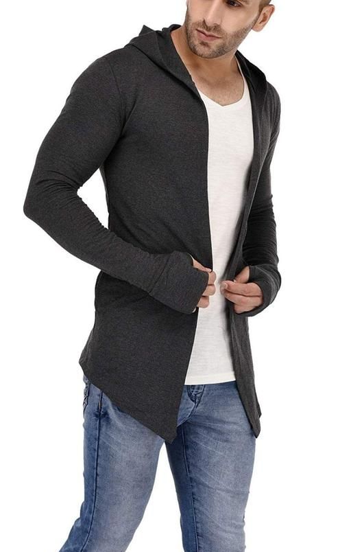 Name: Men Dark Grey Hooded Thumbhole Open Long Shrug Men's Fashionable Self Design Cotton Square Neck Collar Full Sleeves Cardigan Overcoat Shrug