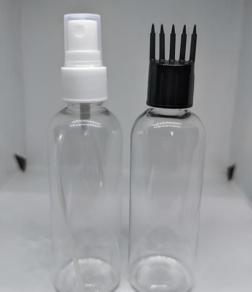 Name: 2 pcs. 100ml empty pet bottles. 1 of them a spray bottle and 2 bottle of them is a oil bottle 2 bottle combo pack